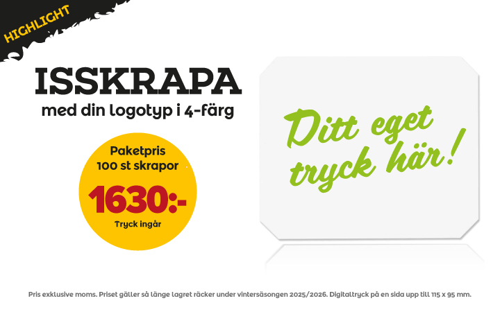 Perfekt som giveaway, kundpresent eller en smart profilprodukt till medarbetarna. Med varje isskrapa får du en mobil reklamyta som används under hela vintersäsongen – dina kunder ser ditt varumärke varje morgon på väg till jobbet!